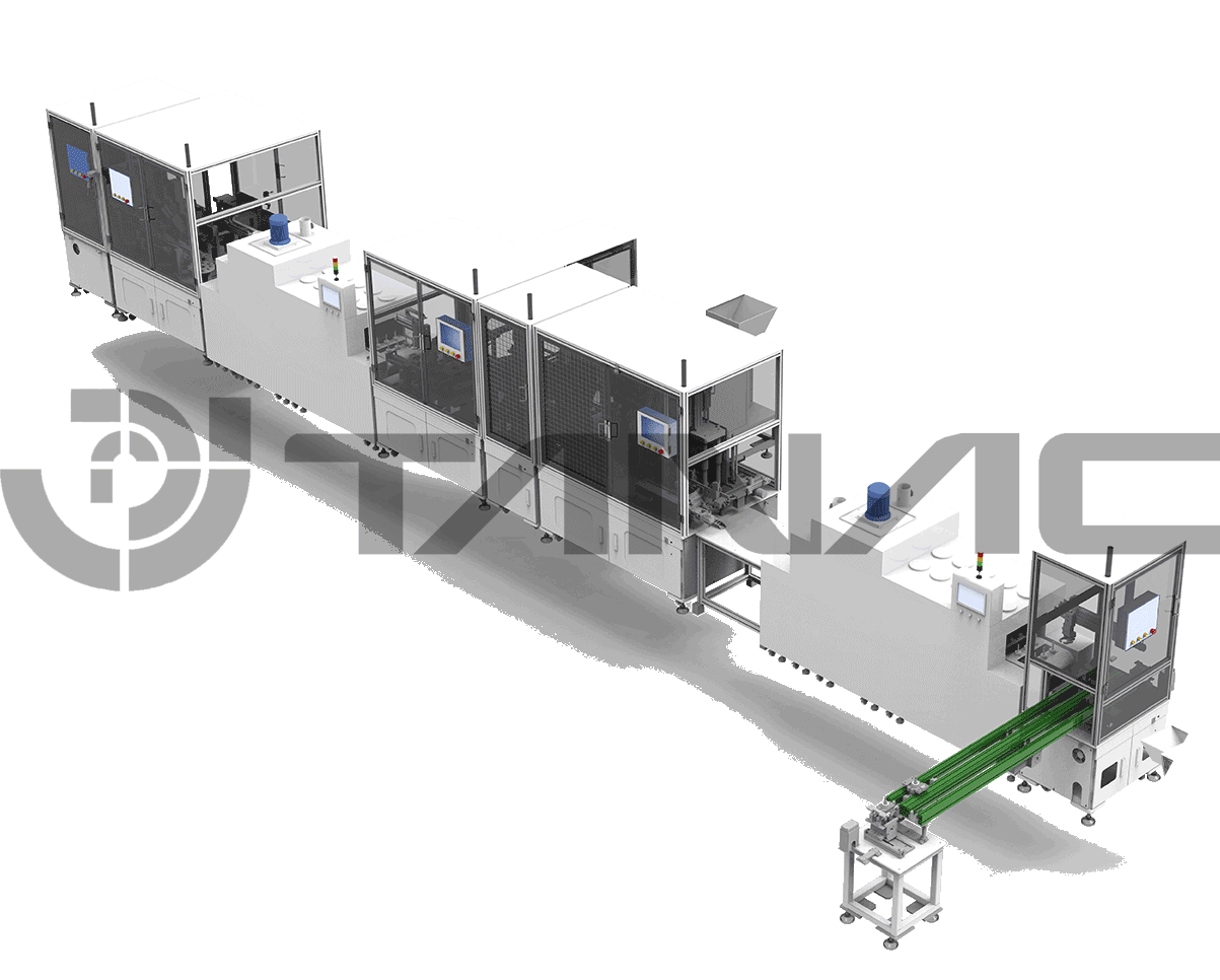 工序:铁芯上料→磁钢上料充磁、涂胶铁磁钢、磁通量检测→加温固化风冷→轴上料、推脱力检测→轴压装大/小轴承上料、压装→自动入磁环→加温固化→下料线体特征: